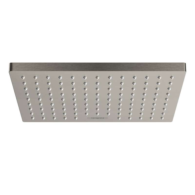 Successful combination of water saving, design and shower pleasure: 9 x 6.75 inch, square, Vernis Shape shower head from hansgrohe The Vernis Shape 230 shower head from hansgrohe brings great shower pleasure at an attractive price to the bathroom. The 230 x 170 mm square shower head distributes the water over the body (XXL performance). The powerful rain jet Rain offers an invigorating fresh kick for the whole body. Versatile: the Vernis Shape shower head can be mounted on the wall or ceiling. A shower arm (9-inch, #04186823) is required for installation. Long-lasting shine and comfortable cleaning. The classic brushed nickel finish is easy to clean and remains looking beautiful. The removable shower head is easy to clean: limescale can be removed by wiping over the silicone nozzles on the shower head (QuickClean). For particularly comfortable showering, the shower head can be easily adjusted at an angle via a ball joint and thus aligned to the invididual spatial situation.
