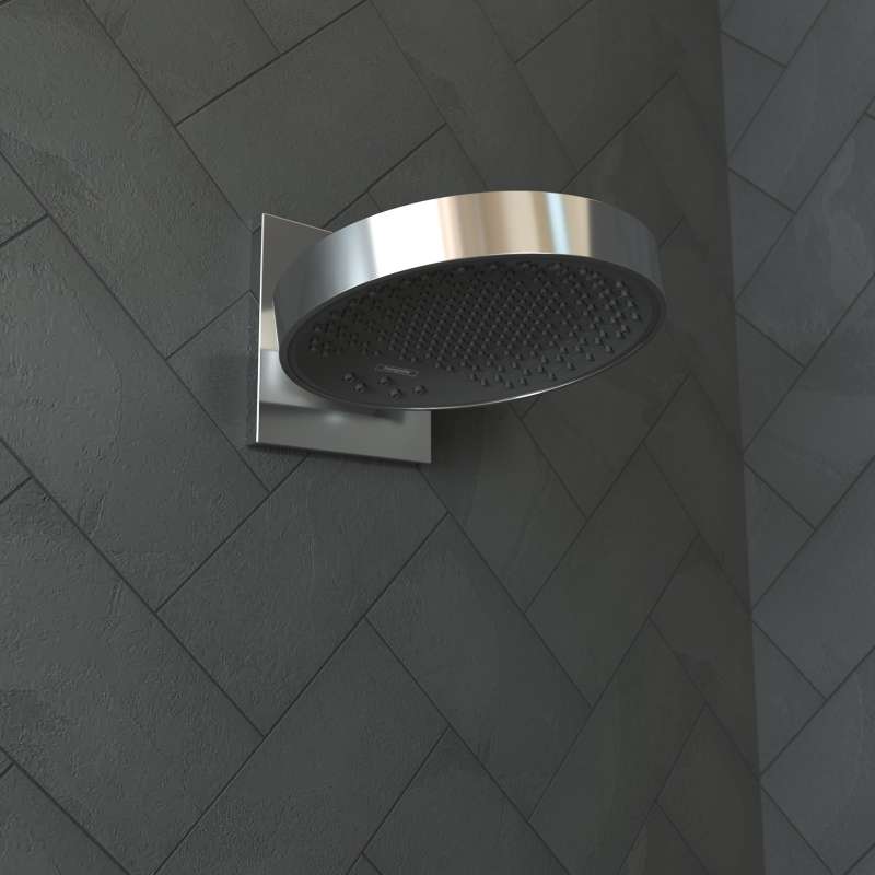 The Rainfinity 250 3-spray overhead shower will pamper you with 3 new hansgrohe spray modes: PowderRain produces thousands of gentle and silky droplets that envelop your body in a soft spray, Intense PowderRain a concentrated spray to invigorate and wake you up in the morning, and RainStream, a generous flow of soft sprays to help loosen tense muscles. The angle of the showerhead can be adjusted vertically from 10-30 deg, allowing you to you keep your hair dry if desired. The innovative spray surface, which curves inwards slightly, ensures the water jet does not hit your head and shoulders from above like a conventional shower would. The chrome finish is a perfect compliment for warmer materials such as wood. The Rainfinity collection creates a unique bathroom that becomes a safe haven in the home.