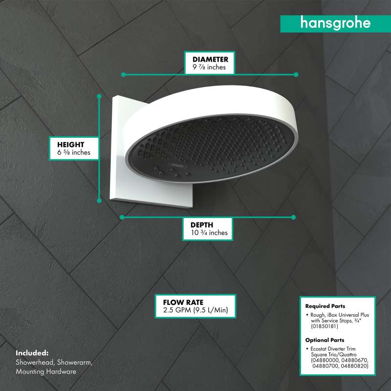 - Installation notes: Hansgrohe recommends a licensed plumber install this product