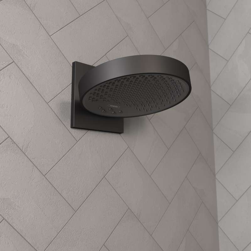 The Rainfinity 250 3-spray overhead shower will pamper you with 3 new hansgrohe spray modes: PowderRain produces thousands of gentle and silky droplets that envelop your body in a soft spray, Intense PowderRain a concentrated spray to invigorate and wake you up in the morning, and RainStream, a generous flow of soft sprays to help loosen tense muscles. The angle of the showerhead can be adjusted vertically from 10-30 deg, allowing you to you keep your hair dry if desired. The innovative spray surface, which curves inwards slightly, ensures the water jet does not hit your head and shoulders from above like a conventional shower would. The chrome finish is a perfect compliment for warmer materials such as wood. The Rainfinity collection creates a unique bathroom that becomes a safe haven in the home.