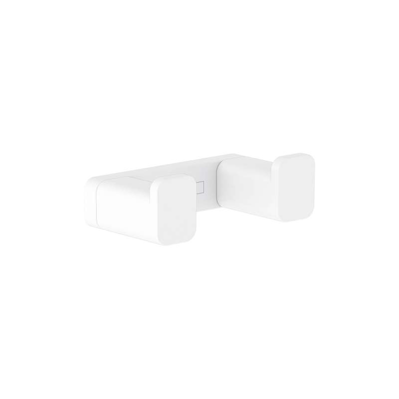 Double towel hook from hansgrohe in matte white. With the AddStoris Double Towel Hook from hansgrohe the bathroom is both functional and visually enhanced. On the compact hook, a bathrobe or towel is always at hand. The modern and reduced design impresses with a clear, expressive design. It fits particularly well with geometric bathroom fittings, such as the hansgrohe line Metropol. Nice that the hansgrohe quality keeps what the high-quality design promises: the AddStoris towel hook is made of metal and therefore particularly durable. This helps in the sustainable use of resources and reduces the plastic content in the environment. The matte white surface is easy to clean. It corresponds to the color of the hansgrohe special surfaces for fittings (FinishPlus). So everything fits perfectly together. Easy to install. The double hook is reliably attached to the wall with two screws. The drilling distance is 1.4 in.