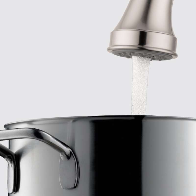 - The smooth aerated spray quickly fills pots while the soft shower jet cleans fruit and vegetables gently