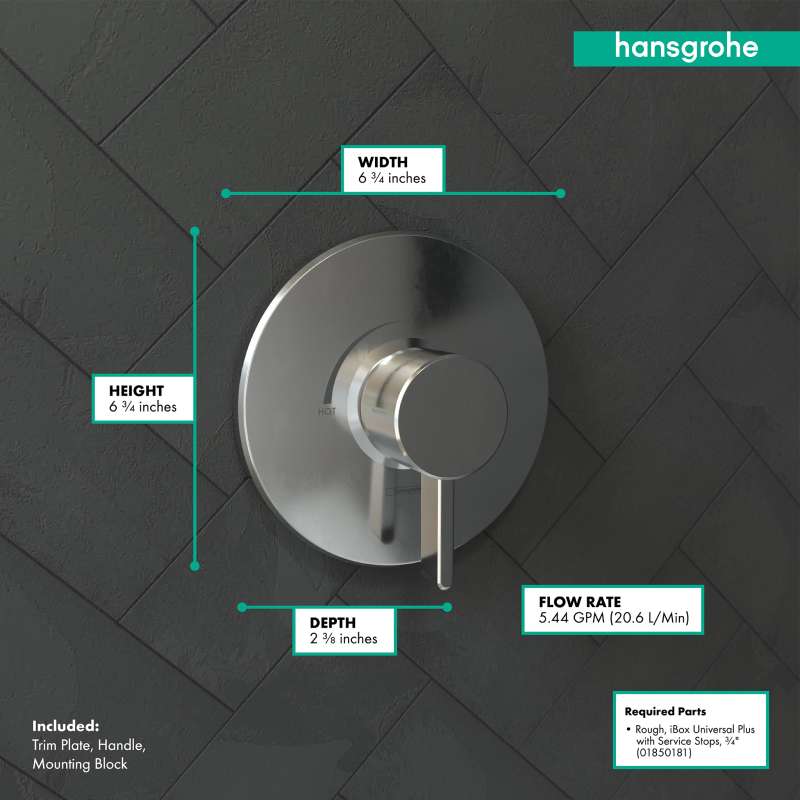 - Installation notes: Hansgrohe recommends a licensed plumber install this product