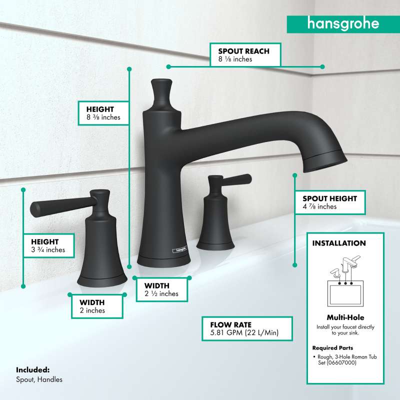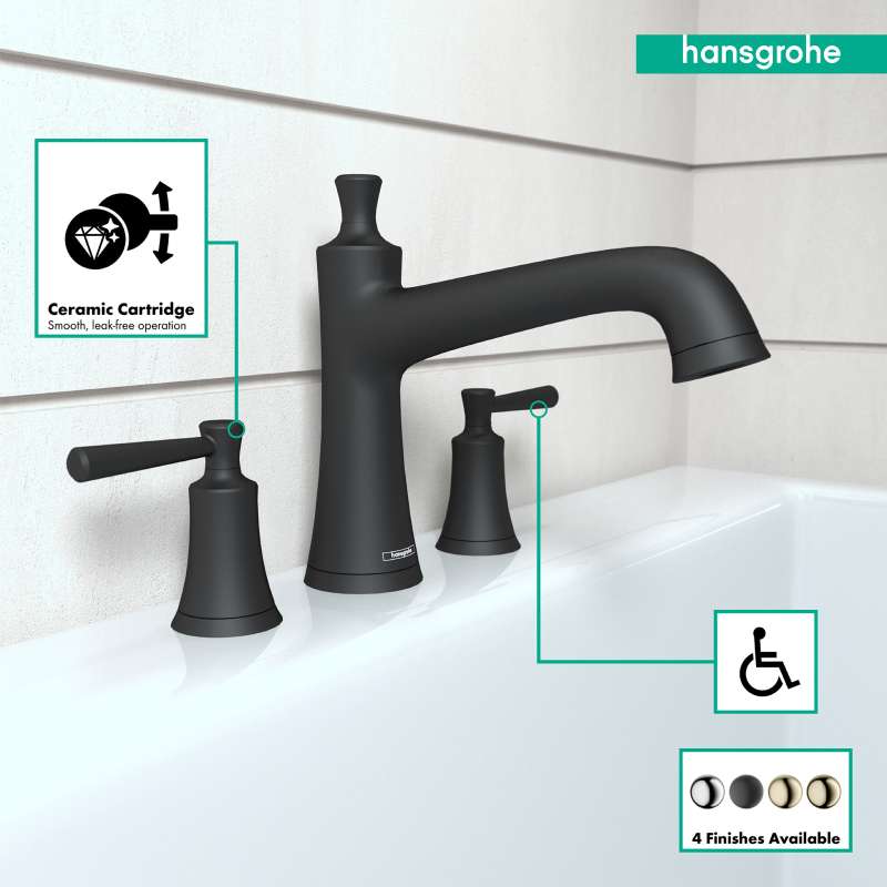 Whether you're starting your day with a shower or winding down with a hot soak, Joleena will elevate the experience and seamlessly weave it in with the rest of your day. The Joleena 3-Hole Tub Filler perfectly coordinates with the entire Joleena bath and shower collection. It requires the hansgrohe Rough for 3-Hole Roman Tub Sets (06607000) for installation in your bathroom. Transform your bathroom into a cleaner and more polished part of your home with the Joleena Collection by hansgrohe.