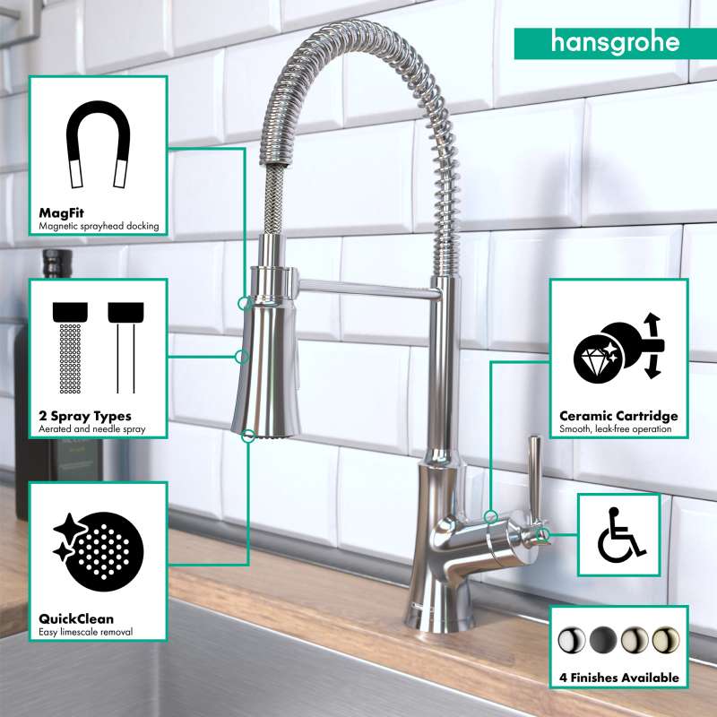 • Hansgrohe Joleena Semi-Pro Kitchen Faucet, 2-Spray, 1.75 Gpm In Stainless Steel Optic, 4792800 Stainless Steel Optic