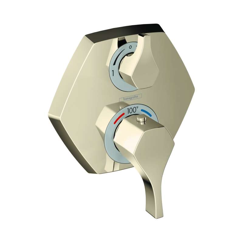 Inspired by the Art Deco movement and the 1920s, Locarno is the revival of iconic sophistication and elegance. Geometric octagonal form recalls the monumental period and will make a bold statement of authenticity and artistic appreciation in any living space. Available in five different finishes, Locarno will enable endless creativity, opening the door for uniquely glamorous interior spaces. The Locarno thermostatic trim with volume control perfectly coordinates with the entire Locarno bath and shower collection. The trim is optimized for low-flow shower options, giving you the same great performance while saving water. It also features temperature memory, allowing you to set your desired water temperature so it's perfect every time. It requires the hansgrohe iBox Universal Plus Rough (01850181) for installation in your bathroom. Transform your bathroom into a cleaner and more polished part of your home with the Locarno Collection by hansgrohe.