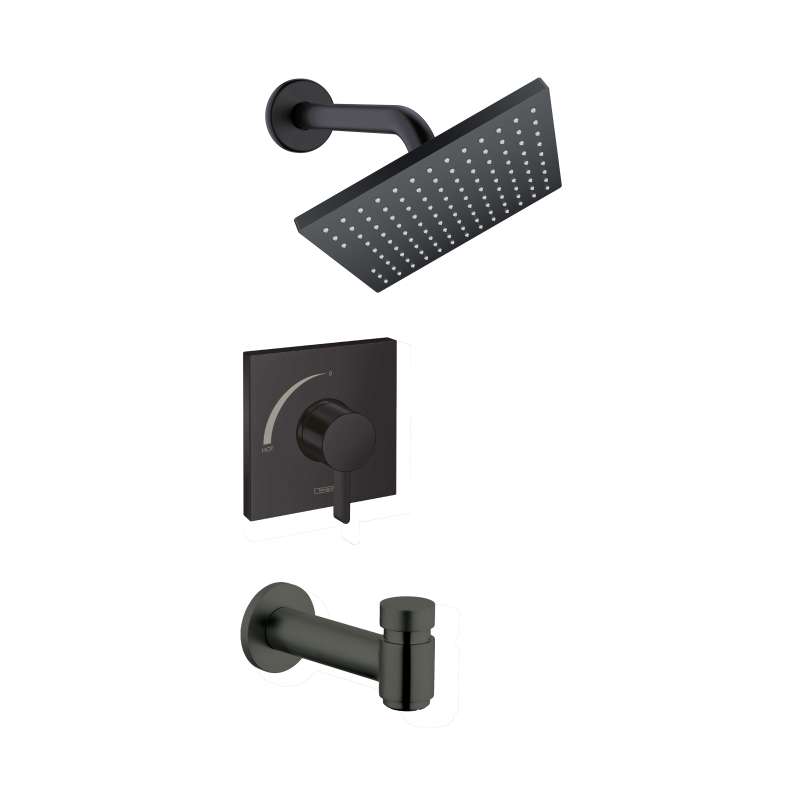 - Included pieces: Vernis Shape 1.5 GPM 1-Jet Showerhead, 9-inch Showerarm, Ecostat Square Pressure Balance Shower Trim, and Metris S Tub Spout with Diverter
