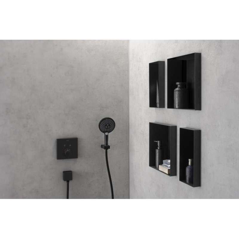 Modern and safe: frameless hansgrohe XtraStoris wall niche in matte white for the shower area. The XtraStoris Minimalistic wall niche 12 x 6 x 5.5 in in matte white from hansgrohe is your stylish shelving solution for the modern wet area. With a width of 6 in, the wall-integrated shelf offers extra space for personal care products. The combination of matte white finish and frameless design underscores the minimalist effect of the wall niche. For a clear appearance and plenty of freedom of movement, the shelf can be integrated flush with the tile in the wall. Alternatively, the body can be installed at a distance of up to 2.1 in out of the wall. That makes the shelf a formative design element, especially in the modern bathroom, and the ideal companion for hansgrohe FinishPlus products. The result is an exclusive and uniform bathroom design. Included in the box are the matte white body and a waterproof installation and seal set specially designed for the shower area. This makes it easy and safe to install. For an accurate flush installation or the variant that has up to 2.1 in protrusion, the mounting set contains suitable supporting rails. The matte white finish is easy to clean and retains its beauty permanently.