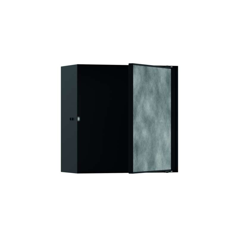 Uniform look: hansgrohe XtraStoris Rock wall niche for the shower area with tiled door. The XtraStoris Rock niche 12 x 12 x 5.5 in with tiled door from hansgrohe is the modern and flexible shelf solution for a sophisticated shower area. Thanks to its tiled door, the wall niche can be perfectly adapted to the bathroom design. Inconspicuously integrated, the shelf helps create a larger and calmer bathroom. With dimensions of 12 x 12 x 5.5 in (H x W x D), it offers extra storage space for personal care products. The wall-integrated installation ensures more freedom of movement in the shower. With its matte black stainless steel body, the wall niche is itself a modern eye-catcher, even when the door is open. The box includes the matte black body with tiled door and a waterproof installation and seal set specifically designed for the shower area. This makes it easy to install and safe to use. The push-to-open feature offers convenient use even with soapy hands: open the door with a simple tap. Quality from hansgrohe: The matte black finish is easy to clean and retains its beauty permanently.