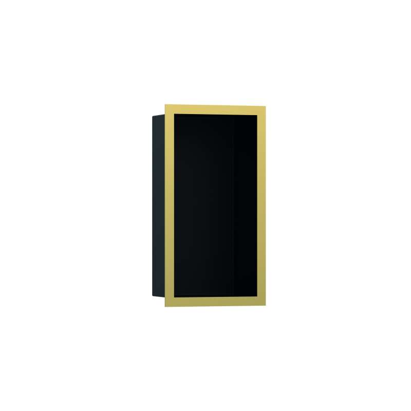 • Hansgrohe Xtrastoris Individual Wall Niche Matte Black With Design Frame 12"X 6"X 4" In Polished Gold Optic, 56095990 Polished Gold Optic