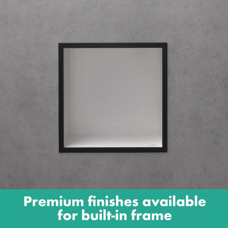 Shelf as a design highlight: hansgrohe XtraStoris individual wall niche (12 x 12 x 4 in) with brushed black chrome-colored frame. The XtraStoris individual wall niche 12 x 12 x 4 in with designer frame in brushed black chrome from hansgrohe is more than just a highly functional shelf for the shower area. In fact, the brushed stainless steel body in combination with the brushed black chrome-colored frame will transform your wall niche into an absolute design highlight in a modern bathroom setting. The shelf solution for showers or bathrooms is perfectly matched to hansgrohe FinishPlus products and blends in seamlessly with the room design. The result? An exclusive, seamless bathroom design. With a size of 12 x 12 x 4 in, the shelf offers extra storage space for personal care products. At the same time, the wall-integrated installation ensures more elbow room in the shower. Included in the box is the brushed stainless steel body and a water-tight installation set especially designed for the wet area, including sealing fleece. This makes it easy to install and safe to use. Quality from hansgrohe: The surface of the body and frame is easy to clean and retains its beauty for longer.