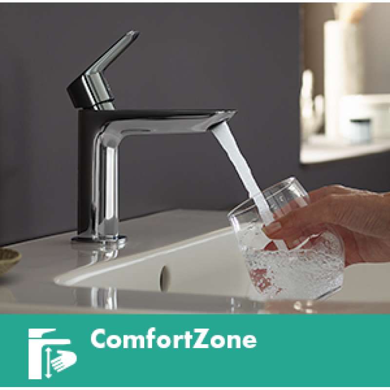 Clear lines and finely curved surfaces make Logis a real eye-catcher. The generous surfaces exude quality and make cleaning child's play. A striking feature of Logis: the ergonomically designed handle with a rounded shape . It invites you to touch and operate it. Logis fixtures are equipped with EcoRight technology to ensure that not only the purchase but also the operation costs are reduced. This protects the environment and your wallet. Hansgrohe AirPower also ensures responsible use of water resources . This mixes air into the water, increasing its efficiency and also your water enjoyment. Transform the space between the spout and the sink into your ComfortZone. Logis bathroom faucets are available in different heights so that you can adjust them perfectly to your sink. This avoids splashes and gives you room to move.