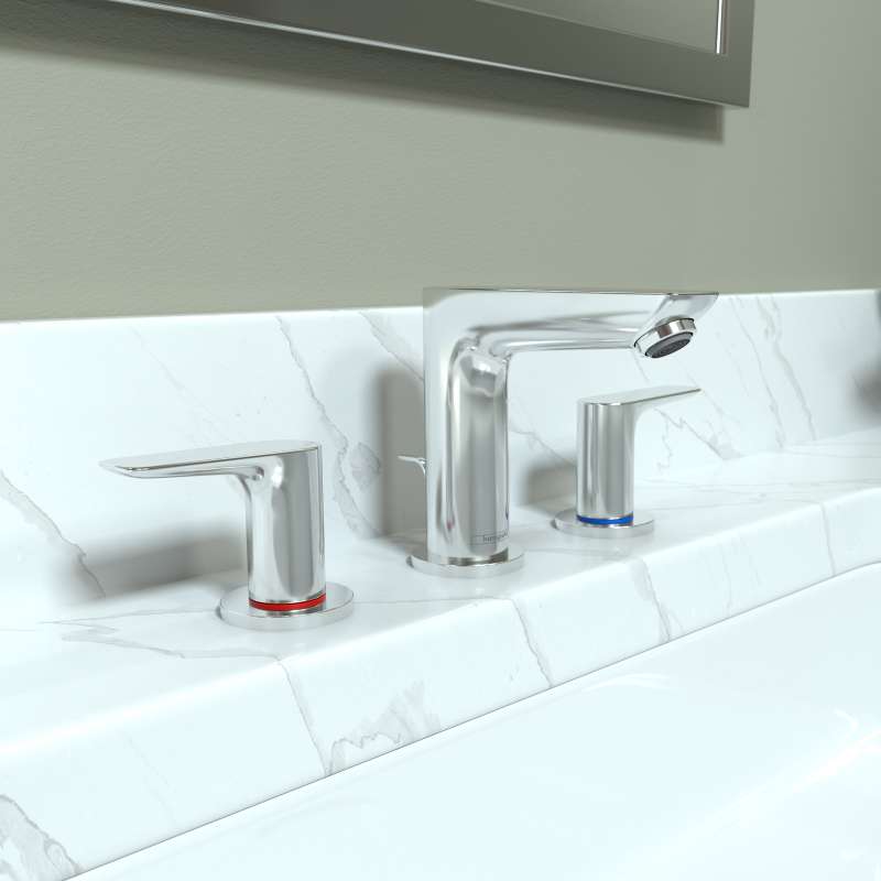 The gently tapered base body of the Talis E bathroom collection flows into a graceful spout with an opulent surface. Precise edges line the spout and lever. Whether you choose a single-lever faucet with ComfortZone or a wall-mounted option: Talis E exudes quality. The floating surfaces are elegantly extended onto the bath and shower. Here, too, hansgrohe offers you Select: Talis Select E bathroom faucets can be operated with your finger, arm or elbow as desired. The Select feature the operating revolution on the bathroom faucet where you can conveniently switch the Water flow on and off at the touch of a button. And the ComfortZone option offers you various spout heights to match your bathroom sink. Talis E is available in a total of 6 finishes with which you can create effective designs or pick up the style throughout the bathroom. The trendy colors and surface designs underline your personal taste without compromising on the timeless design.