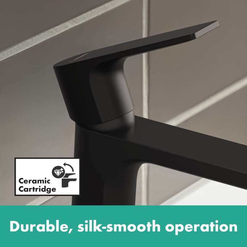 Quality that suits your style: Rebris E bathroom faucet with pop-up drain. With its timeless, sleek design, the Rebris E 110 bathroom faucet with pop-up drain will visibly enhance your bathroom. The sleek shapes and precise surfaces create an atmosphere of well-being. Rebris E includes modern designer faucets at a fair price. Make your own dream bathroom a reality. The renowned hansgrohe quality brings the promises of a winning design to life: A high-quality ceramic valve system controls the water volume and temperature. This keeps working smoothly and reliably even after frequent use. Thanks to innovative hansgrohe technology, the faucet helps to save water also: even at high water pressure, there is a max. flow of 1.2 GPM. For a full water jet, the single lever faucet enriches the water with air (AirPower). This creates a soft jet that splashes less - meet the beauty of water. The included pop-up drain can be easily opened and closed using one hand. This makes it Easy to operate the waste plug without having to reach into the water. The faucet is even suitable for hard water. The aerator can be removed for cleaning and descaled using a coin. No tools needed. This keeps the faucet looking like new.