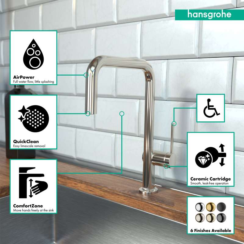 - Installation notes: Hansgrohe recommends a licensed plumber install this product