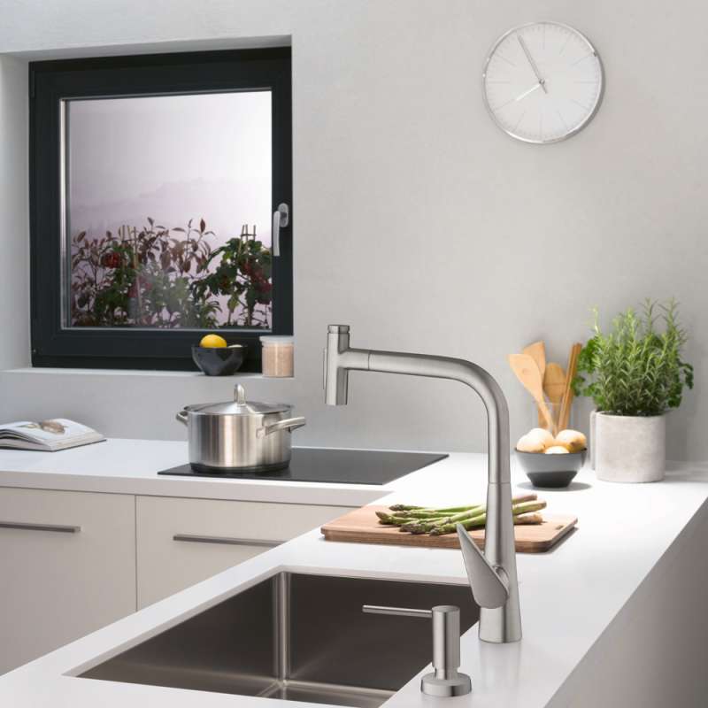 • Hansgrohe Talis Select S Higharc Kitchen Faucet, 2-Spray Pull-Out, 1.75 Gpm In Stainless Steel Optic, 72823801 Stainless Steel Optic