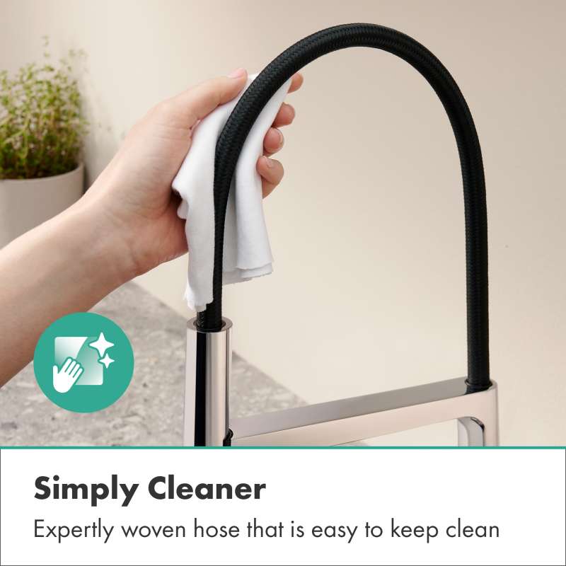 Especially for families, the kitchen is a lively room where there is always something going on. We often underestimate the importance of the frequently used kitchen faucet. This is where Talis Select N PowderSpray comes in. Developed with great attention to detail, the faucet offers unrivalled flexibility and the highest level of comfort with three spray types. Let yourself be fascinated by the gentle PowderSpray spray mode, which turns everyday kitchen work into a pleasant experience. The laminar spray , which offers a consistent water flow, and the shower spray, which is perfect for precise cleaning tasks, will also convince you all along the line.