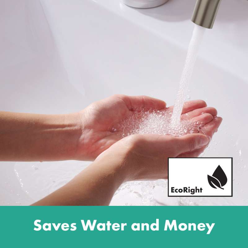 - Saves water, energy and money: The flow rate is automatically restricted to max. 1.2 GPM, even when the water pressure varies (EcoRight)