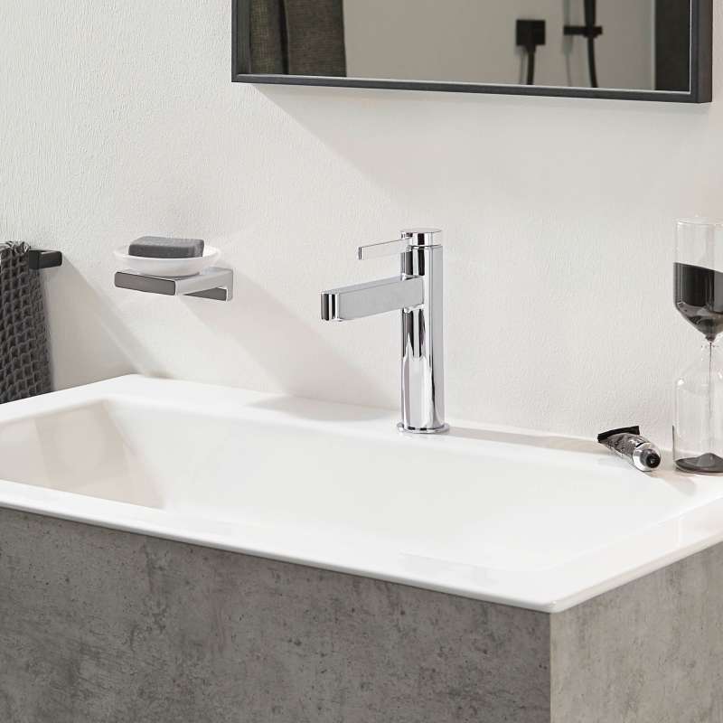 Modern single-hole faucet in chrome for a puristic bathroom ambience - includes push-open drain The Finoris 110 single-hole bathroom faucet in chrome with push-open drain assembly from hansgrohe interprets the classic operating concept surprisingly new and modern via a slim single handle. The slim, geometric shapes fit particularly well into a puristic bathroom ambience. There, the faucet sets an expressive accent with its Easy-to-clean surface in chrome. The high quality faucet keeps what the Elegant design promises. The single handle controls a high-quality ceramic valve from hansgrohe. The amount and temperature of the water are reliably adjusted. The quiet and crystal clear laminar spray continues the slim fitting body and forms a harmonious unit. Thanks to hansgrohe EcoRight technology, the faucet helps save water. It uses a maximum of 1.2 GPM - even at high water pressure. The sink is the heart of the bathroom. Here, the high spout simplifies with approx. 4 in. distance from the aink for many everyday tasks (ComfortZone 110). Whether it is filling large vessels or washing hair quickly under the faucet, the Finoris single-hole bathroom faucet 110 supports confidently. Push-open drain included. The included push-open drain fitting is operated without a pull rod. A short finger pressure on the drain plug opens or closes the valve. Without the pull rod on the back, the faucet looks even more puristic.
