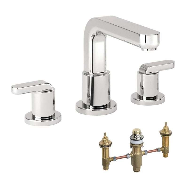 - Kit includes roman tub faucet with lever handles and rough-in