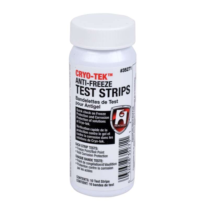 Hercules Cryo-Tek Test Strips simultaneously check the level of propylene glycol and level of corrosion protection.