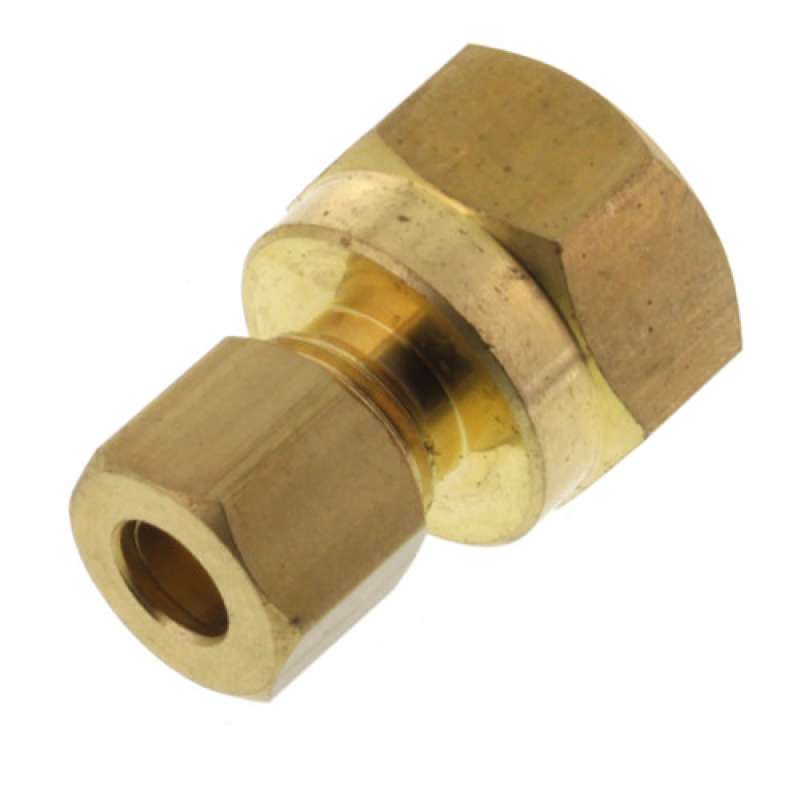 Jones Stephens Compression Connector is made of brass. It has lead free features. Size: 1/4" x 3/8".