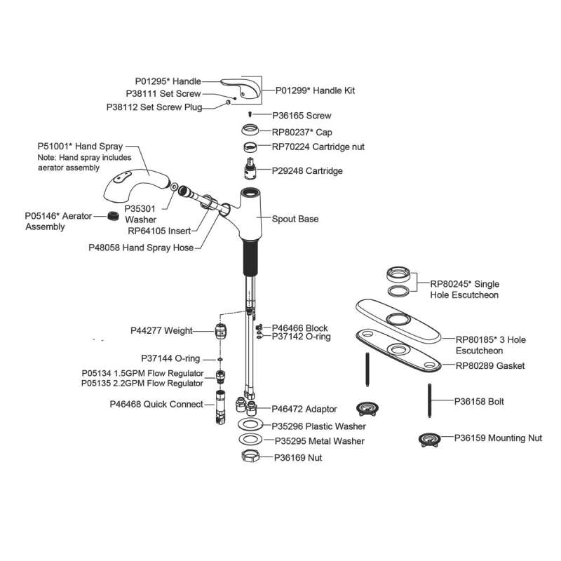 | Features Faucets | Low Flow;Solid Brass Waterway Construction |