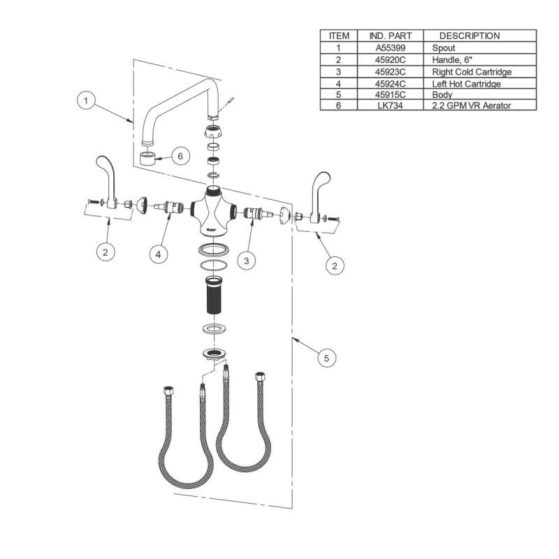 • SPOUT SWING RESTRICTOR PIN: Special pin locks faucet into stationary position for required applications