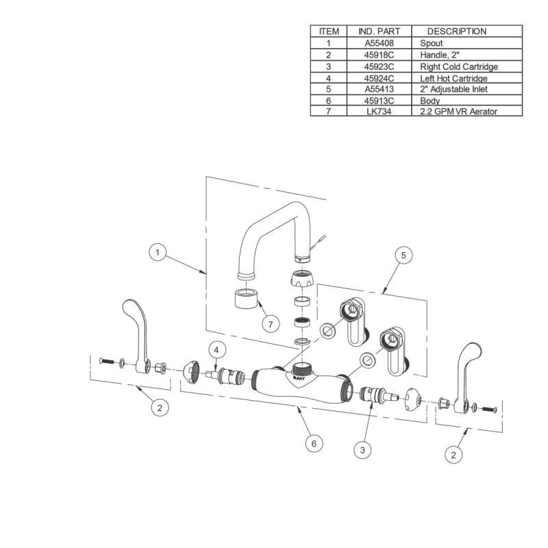 | Features Faucets | Low Flow;Solid Brass Construction;Spout Swing Restriction Pin |