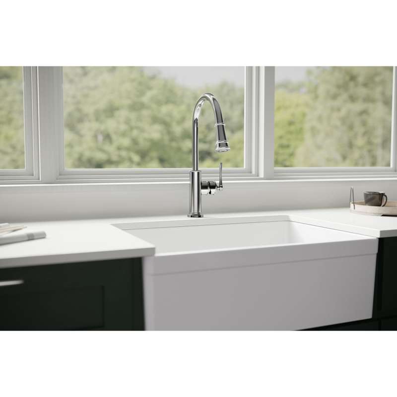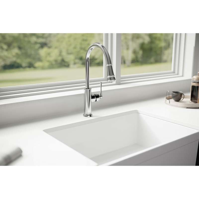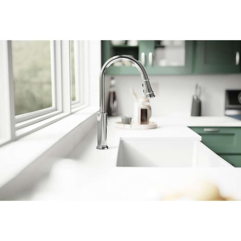 - PULL-DOWN SPRAY HEAD: Provides extra reach for additional cleaning and rinsing coverage