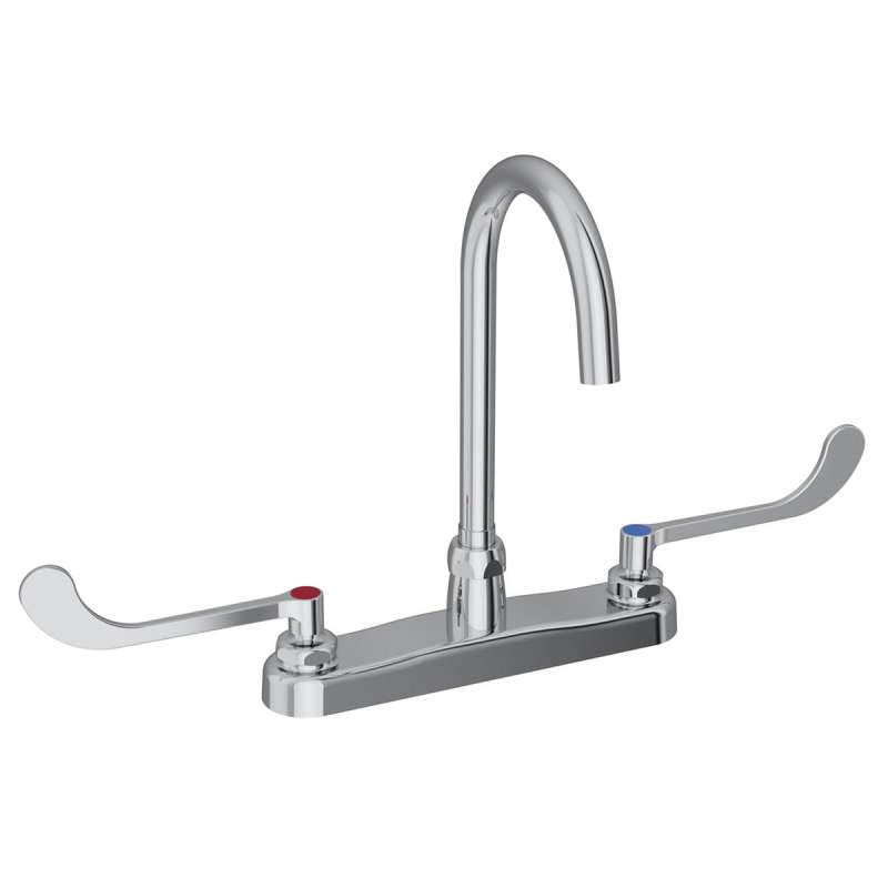 8" Centerset With Exposed Deck Laminar Flow Faucet With 5" Gooseneck Spout 6" Wristblade Handles Chrome, LK810LGN05T6