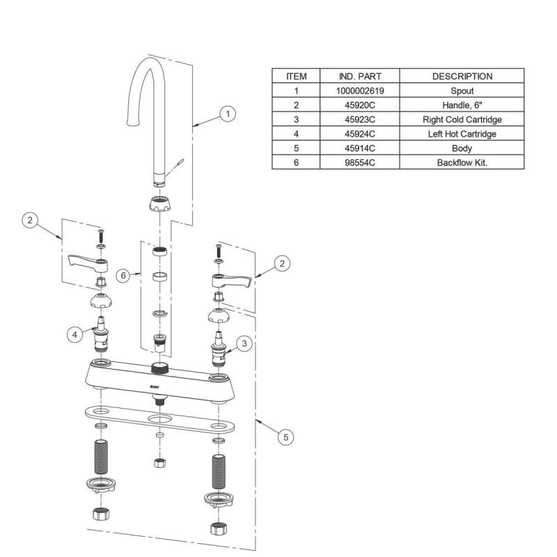 • SPOUT SWING RESTRICTOR PIN: Special pin locks faucet into stationary position for required applications