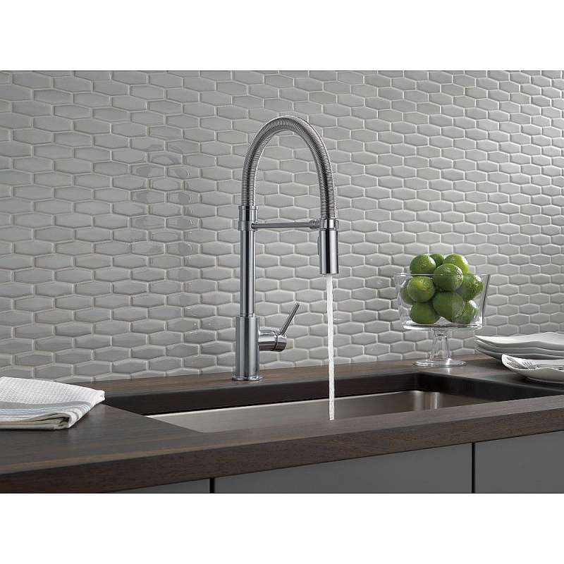 - High-arc pull-down swivels 360 degrees for complete sink access