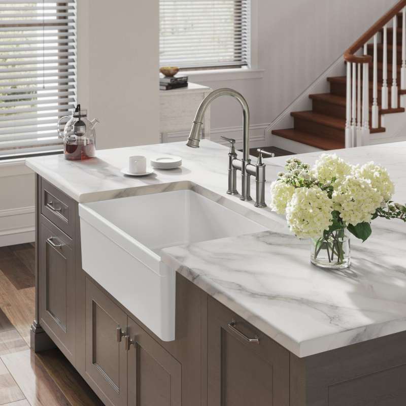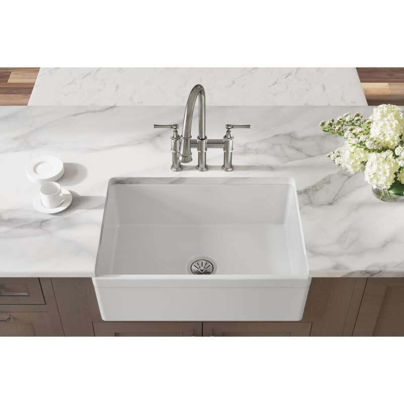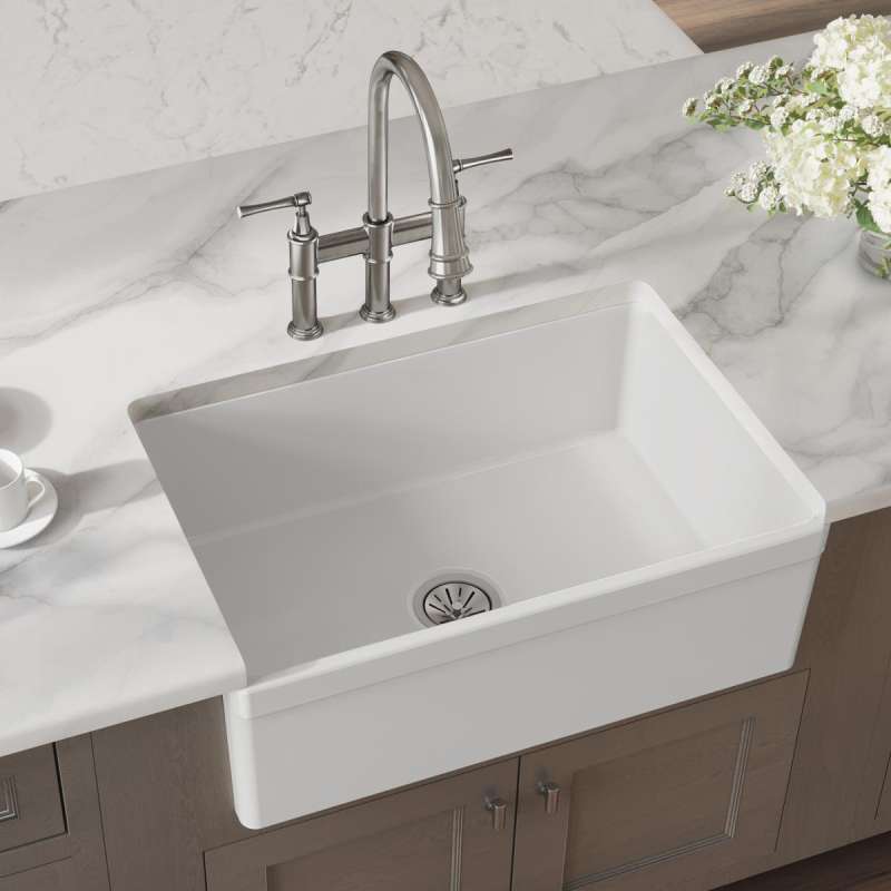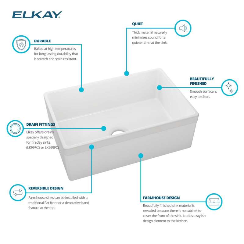 Fireclay sinks have a timeless appeal that has endured for decades. Choose an Elkay fireclay farmhouse apron front kitchen sink, a convenient prep sink or a bar sink. The attractive, smooth glaze is easy to clean. Beauty and durability come together in a scratch- and stain-resistant surface.
