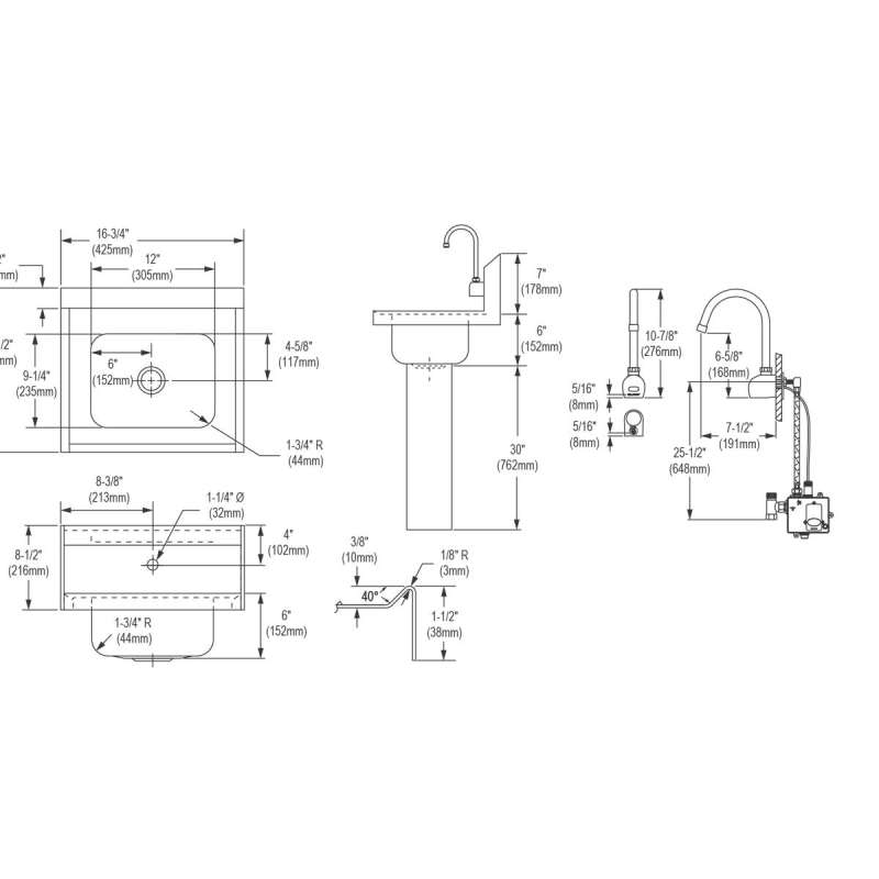 - KIT INCLUDES: CHSP1716 sink, LKB722C AC/battery-powered sensor faucet, LK723 thermostatic mixing valve, LK8 grid drain fitting, and LK500 P-trap