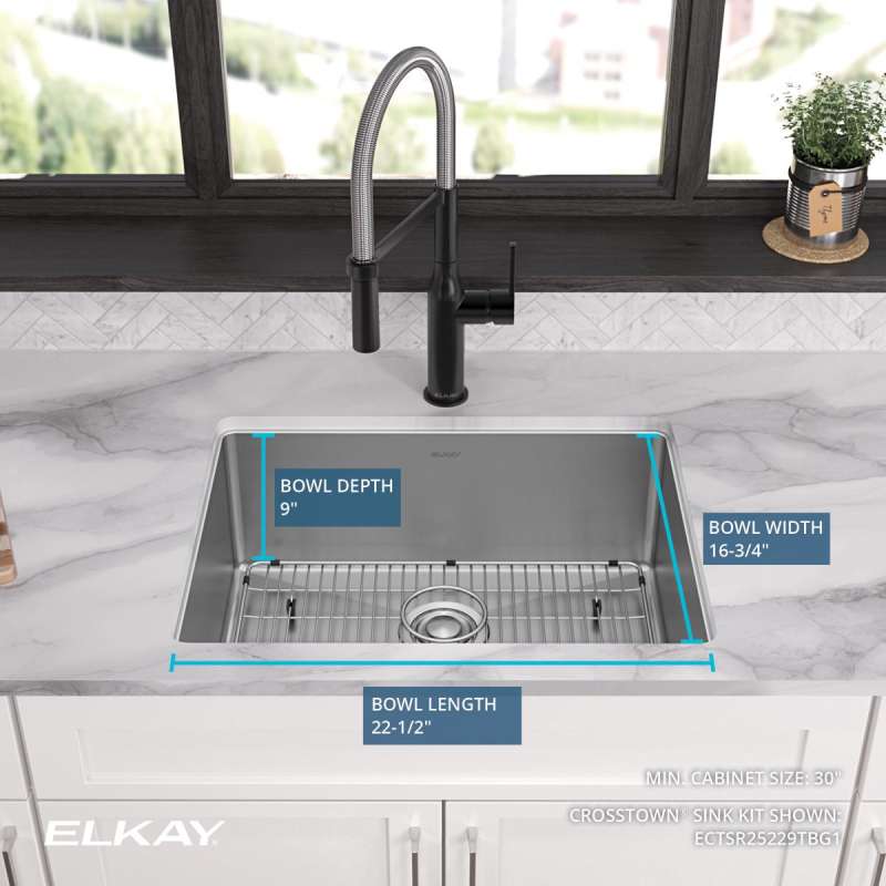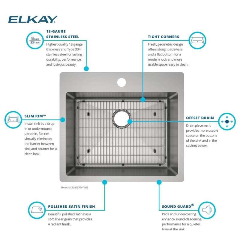 - KIT INCLUDES: ECTSR25229T sink, CTXBG2115 bottom grid; conveniently packaged together to save you time