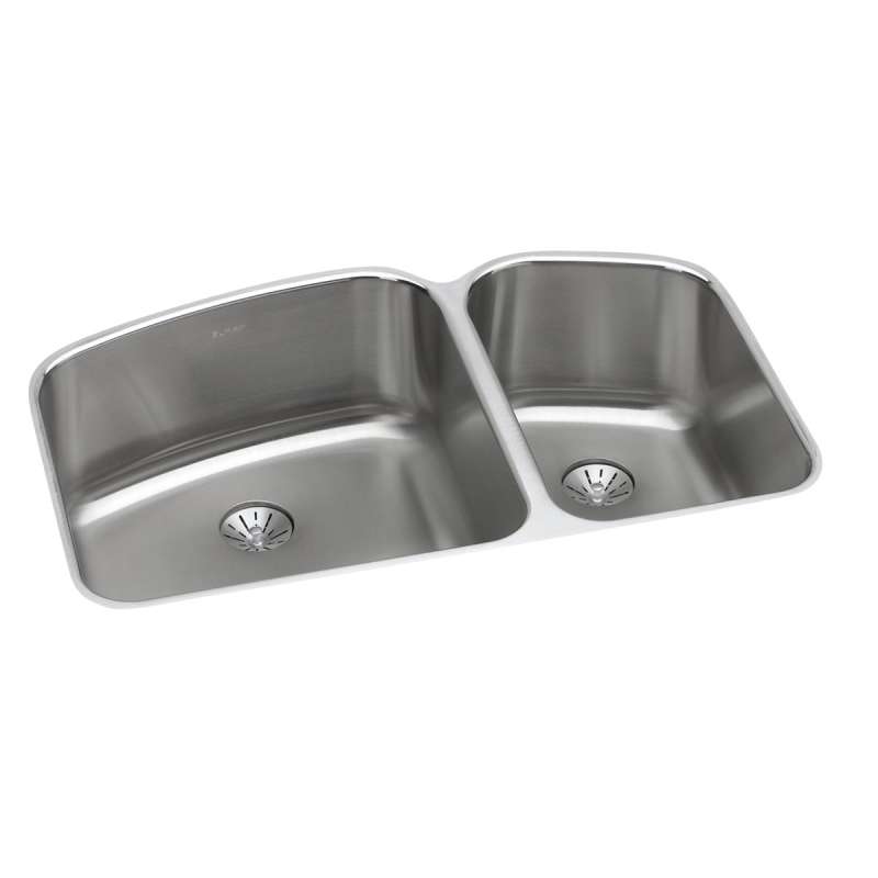 Lustertone Classic Stainless Steel 32-3/4" X 21" X 9" 60/40 Double Bowl Undermount Sink With Perfect Drain(R), ELUH31229RPD