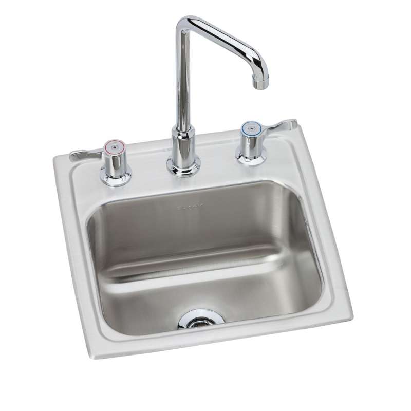 Lustertone Classic Stainless Steel 15" X 15" X 7-1/8" 3-Hole Single Bowl Drop-In Bar Sink + Faucet Kit, BLH15C