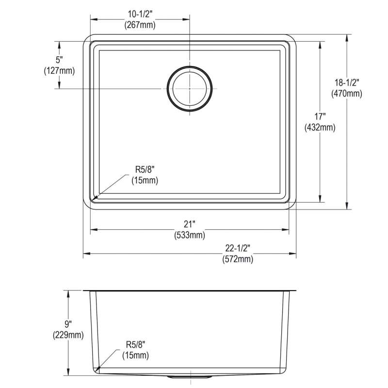 Stainless Steel 22-1/2" X 18-1/2" X 5-1/2" Undermount Single Bowl Radiant Satin 18 Gauge Sink, MFD115