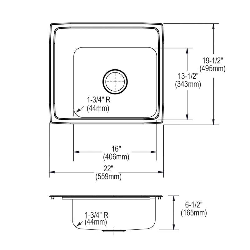 | Countertop Cutout Dimensions | 21-3/8" x 18-7/8" (543mm x 479mm) with 1-1/2" (38mm) corner radius |