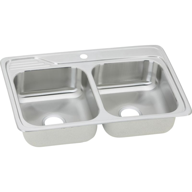 Elkay ECC33221 Gourmet Celebrity Stainless Steel Double Bowl Top Mount Sink with Single Faucet Hole