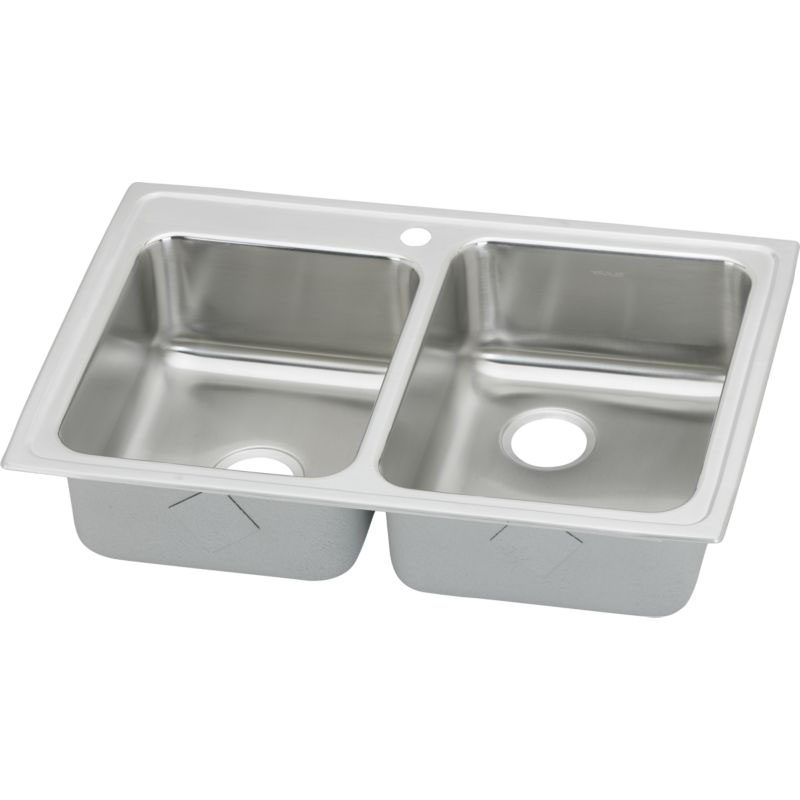 Elkay LR250L1 Gourmet Lustertone Stainless Steel Double Bowl Top Mount Sink with Single Faucet Hole