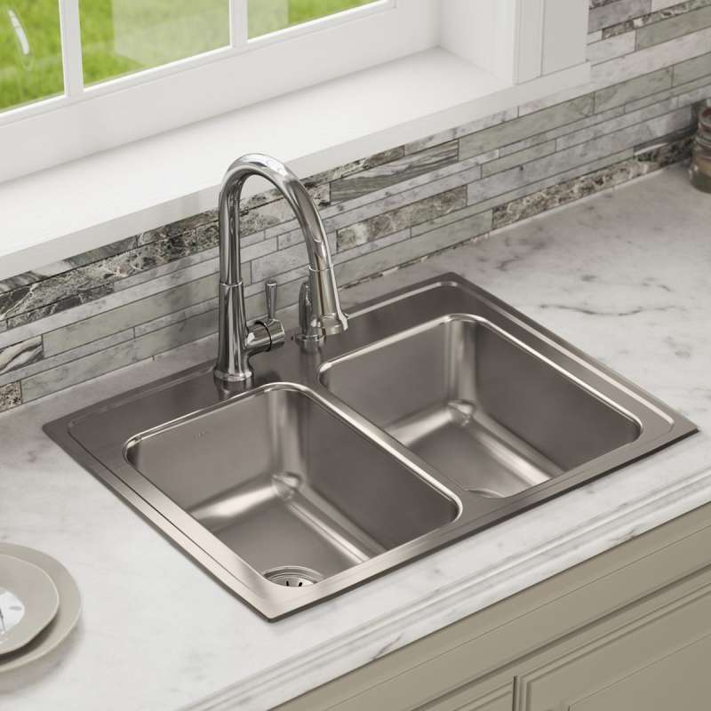 An Elkay Lustertone Classic stainless steel sink looks as great on day 3,000 as it does on day one. The rich, uniform grain is scratch resistant for heavy-duty use, whether it's a kitchen sink or a prep, bar, laundry or commercial sink. Light scratches, which occur with everyday use, naturally blend into the finish of this durable sink with time. Deeper scratches are repairable with an Elkay stainless steel restoration kit. Available in ADA depths.