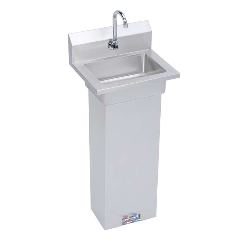 Stainless Steel 18" X 14-1/2" X 42" 18 Gauge Hand Sink With Pedestal Base Foot Valve And Faucet, EHS-18-PEDX