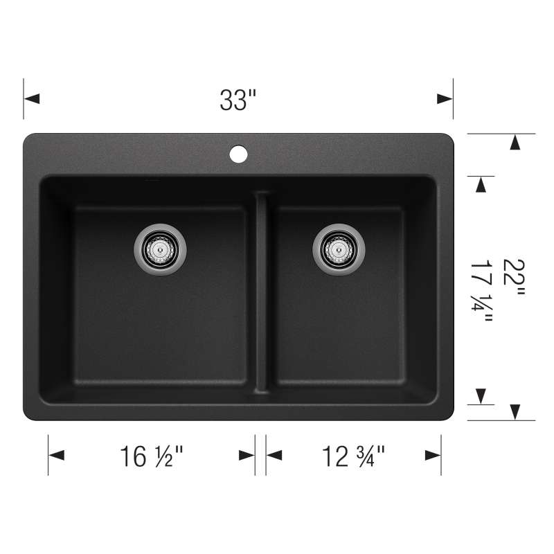 Every space deserves to be beautiful. BLANCO's LIVEN 33" 60/40 double bowl kitchen sink is ideal for multitasking; easily clean dishes in one bowl, while using the other for drying. The convenient low divide makes maneuvering large pots and pans a breeze. Made of SILGRANIT, LIVEN kitchen sinks are engineered to withstand heavy cookware and hot bakeware. SILGRANIT sinks are not only strong but also beautiful, available in a range of nature-inspired colors that effortlessly complement the latest kitchen trends. Combine the LIVEN double bowl sink with a BLANCO faucet and accessories to create a BLANCO UNIT; a seamlessly integrated kitchen solution designed to transform kitchen chores into joyful experiences. Everything you need to drink, prep and clean, all in one place.