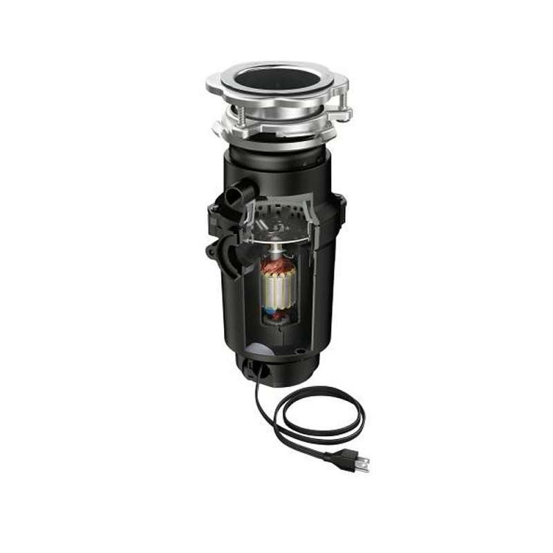 The GX PRO Series garbage disposals pack all the standard features and reliable performance into a more sleek and compact form, making it an ideal selection for professionals and consumers alike.1/2 horsepower VORTEX motor has powerful grinding capabilities for everyday kitchen scraps Universal Xpress Mount fits Moen and most existing 3-bolt mounting assemblies, including InSinkErator brand* High speed 2600 RPM VORTEX permanent magnet motor designed to reduce jamming Power cord preinstalled, saving installation steps and money over other models where cord must be purchased separately Compact design is lighter weight for easier installation and frees up valuable space under the sink Continuous feed technology with galvanized steel grind components Garbage disposals reduce waste sent to landfills making it an eco-friendly option for your home Compatible with properly sized septic tanks