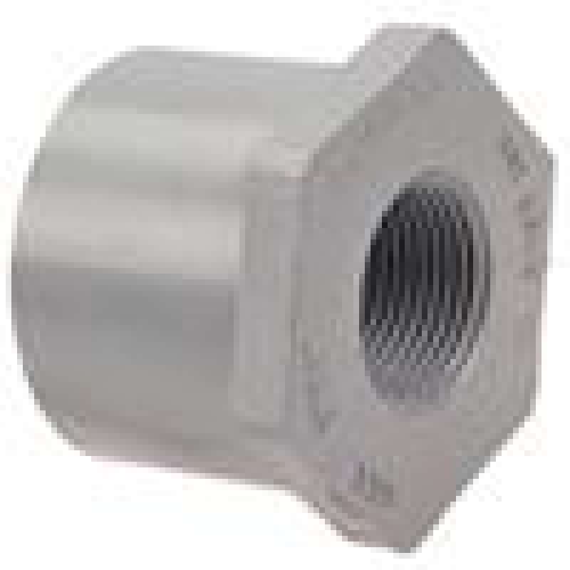 The Chemtrol flush socket reducer bushing is an injection molded Corzan CPVC Schedule 80 thermoplastic fitting for use with chemical processing, industrial plating, chilled water distribution, deionized water lines, chemical drainage and waste water treatment systems. The light grey Corzan CPVC flush socket reducer bushing features a male end and a female NPT thread connection. Chemtrol CPVC fittings are lightweight, easy to install and maintenance-free. Chemtrol fittings connect piping lengths together with solvent cementing, threading or flanging to create a highly reliable, leak-free system. Please refer to Chemtrol technical data sheets, chemical resistance guides and catalogs for engineering and installation information. Corzan CPVC Schedule 80 thermoplastics demonstrate excellent mechanical strength over broad temperature range, outstanding underground performance and superior hydraulics. Chemtrol Corzan CPVC fittings are lightweight, easy to install, maintenance-free and will not rust, scale, pit or corrode. Chemtrol premium line of plastic fittings is backed by a 1-year limited warranty. Because Chemtrol is a NIBCO brand the flow-control fittings are unsurpassed in quality, performance and longevity.