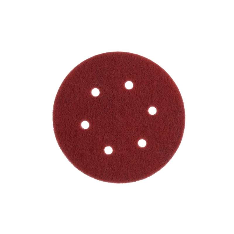 The Scotch-Brite™ Hookit™ 7447 PRO Disc combines flexible fibers with outstanding cut to help you accomplish tough cleaning jobs or produce fine finishing results, use after use. It is an excellent alternative to steel wool, wire brushes, sandpaper, and other non-woven products for cleaning or finishing tasks. The Hookit™ backing enables convenient attachment on a random orbital sander. Uniform Results in Less Time The 7447 PRO Disc is engineered to reduce surface prep time whether prior to paint in the automotive industry or scuff sanding furniture or cabinetry. A fiber coating technology allows the Scotch-Brite™ Hookit™ 7447 PRO Disc to cut faster and produce a more consistent scratch, reducing the time it takes you to scuff, prep or finish parts. The tightly graded abrasive particles provide consistent, uniform results throughout life of the disc. Featuring very fine grade aluminum oxide abrasives, this disc cuts fast, leaving a clean and smoothly finished surface. Versatile Disc Replaces Steel Wool Suitable for use on a wide variety of materials such as wood, metal, plastics, ceramics, porcelain, glass, rubber, or composites, the performance of this pad is comparable to steel wool grade 1. However, unlike steel wool, the Scotch-Brite™ Hookit™ 7447 PRO Disc won't rust after use or create fine metal splinters. Use it for cleaning, finishing, blending, and deburring, or for scuffing before applying paint and paint primers. It can even clean upholstery and chrome. This versatile product is effective in wet or dry environments and can be rinsed and used over and over again. The Scotch-Brite™ PRO Advantage Scotch-Brite™ PRO is a unique surface conditioning product with abrasives incorporated into non-woven nylon fibers. Breakthrough fiber coating technology allows Scotch-Brite™ PRO abrasive products to cut faster and produce a more consistent scratch than competitive non-woven abrasive products, reducing the time and effort it takes to finish parts. Combining abrasives with the fibers creates an abrasive system that delivers consistent results for the life of the product. The open-web material is load resistant and keeps the abrasive minerals cutting at high performance by limiting clogging of the nylon fibers. Fast Cut and Durability of Aluminum Oxide Aluminum oxide is a popular mineral among industrial professionals because of its cut-rate and long life. It is a tough, durable abrasive that self-fractures to expose fresh cutting edges in use, whereas traditional abrasives, such as garnet, quickly wear down with use. Due to its high cut-rate, hardness, strength, and low heat retention, aluminum oxide mineral is widely used in grinding applications in addition to sanding and finishing use. Aluminum oxide is suitable on a wide variety of substrates in both woodworking and metalworking, including ferrous alloys. The Convenience of 3M™ Hookit™ The Hookit™ backing on the 7447 PRO disc allows easy, direct attachment of the disc onto a 3M™ Hookit™ Backup Pad (sold separately), eliminating the need for an intermediary Conversion Face between the non-woven disc and the backup pad. Hookit™ discs conveniently and firmly attach to a hook-and-loop backup disc pad (sold separately) on a random orbital sander, can be removed cleanly and easily, and be used again and again for the extent of the abrasive life. Direct attachment makes using the popular 7447 PRO disc more convenient than ever. Rather than working with a hand pad or needing to incorporate a Conversion Face to drive the disc, operators can increase productivity and make the most of the disc by running it on a 3M™ Orbital or Random Orbital Sander.