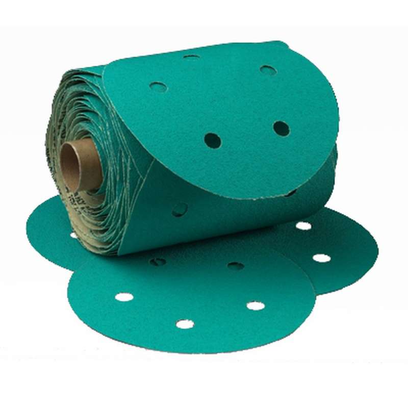 3M™ Stikit™ Green Disc Roll contains durable, fast-cutting abrasive discs for aggressive collision repair jobs. Discs feature fast-cutting aluminum oxide abrasive built on D-weight paper backing. Multi-hole construction helps clear dust from the disc surface. Stikit™ discs feature adhesive backing for fast, easy changeout. These discs tear off the roll one at a time for speed and efficiency. The Ease of a Disc Roll, The Speed of Stikit™ Attachment 3M™ Stikit™ Green Disc Roll is packaged as multiple adhesive-backed discs rolled into a tube. These discs tear off conveniently one at a time for speed and efficiency, and they require no liners which saves material costs. Ready-to-use Stikit™ discs feature a pressure sensitive adhesive coating on the backs – simply press the disc onto the backup pad and you're ready to go. They remove just as cleanly, leaving an uncontaminated surface for the next disc. Use with 3M™ Stikit™ Disc Roll Dispenser (05450) or 3M™ Stikit™ Light Duty Dispensers (PN 05455 for 5" discs). Truly a Cut Above With its aluminum oxide mineral abrasive, the Stikit™ Green Disc Roll provides a sharp cut – more aggressive than a comparable closed coat abrasive of the same grade. Durable D-weight paper backing makes the disc ideal for more aggressive auto body sanding jobs such as shaping plastic filler, removing paint around damaged areas and scratch refinement of bare metal. Resists Dust and Debris Open coat construction means the abrasive grains on the 3M™ Stikit™ Green Disc Roll are placed with space between them to help evacuate sanding dust and other debris to avoid clogging the cutting edge of the grains. The load-resistant coating on the abrasive grains also allows the disc to continue cutting even when sanding paints and other materials that would otherwise clog the disc and hinder sanding ability. All of this adds up to increased productivity and reduced material consumption. The 5-hole or 6-hole pattern on the 3M™ Stikit™ Green Disc Rolls helps clear dust from the surface of the disc, making for longer disc life and a more consistent finish. This hole design doesn't even require alignment of holes with the disc pad, (3M suggests backup pad 05655 or 05656) making disc changes quick and simple. Better Science for Better Sanding from 3M From its abrasive to its convenient and cost effective packaging to its fast, easy Stikit attachment, the 3M™ Stikit™ Green Disc Roll is another example of how 3M applies science to life – making collision repair operations better and more efficient.