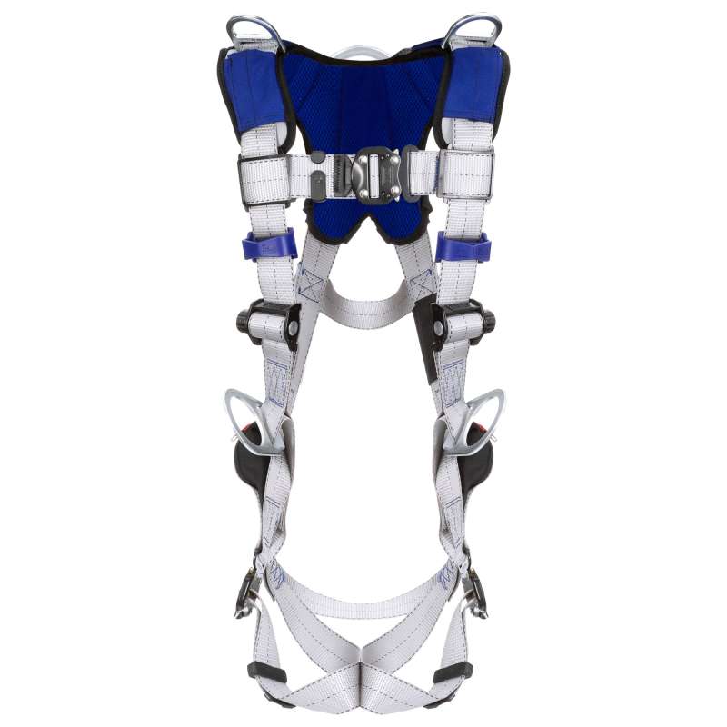 The 3M™ DBI-SALA® ExoFit™ X100 is designed with high-quality components that have been developed to enhance the harnesses safety and comfort while working at height on your job site. The X100 comfort harness is built with 6,000lb polyester webbing, nylon/polyester hybrid comfort padding and robust alloy steel hardware. The anti-slide back D-ring plate design helps reduce dorsal D-ring slide and enables a convenient adapter location to connect personal SRLs. Select configurations are also available with exclusive weight distribution systems to help reduce shoulder strain and fatigue.